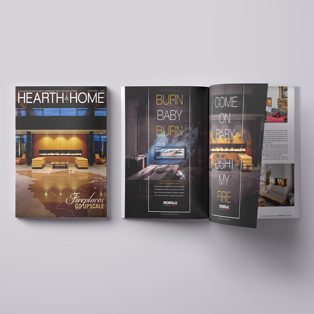 An additional Montigo Fireplaces campaign was granted to specifically target commercial architects through architecture magazines. We created (or borrowed) the tagline “Come on baby light my fire” and showed key fireplace images alongside their features.
