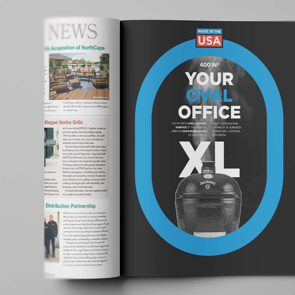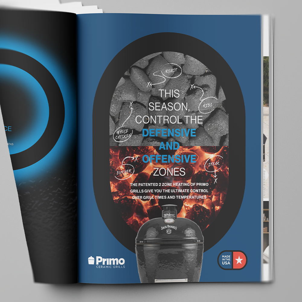 One example is a campaign for Primo Ceramic Grills, where we were challenged with the task of speaking to both dealers and consumers at the same time. We landed on pushing the messages of the main brand differentiators, which are the oval shape of the grill, and the special 2 zone heating. This speaks to a consumer who is in the market for a grill, as well as a dealer who is looking for new showroom product, or even talking points.